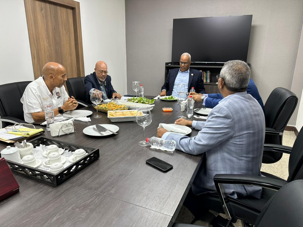 El Dr. Luis Díaz fue recibido por una comisión institucional encabezada por el Mayor General (R) Valerio Antonio García Reyes, ERD, presidente de la Hermandad, a quien informó sobre los contactos sostenidos recientemente con la Directora y la Encargada de Operaciones del Banco de Alimentos del Estado de Rhode Island, así como con el Banco de Alimentos Elías, quienes brindarán asesoría técnica especializada para la puesta en marcha del Banco de Alimentos de la Hermandad.