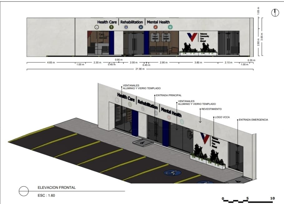 El centro proyectado por VCCA y la Hermandad contempla la instalación inicial de ocho (8) consultorios médicos, orientados a la atención de veteranos norteamericanos y dominicanos en diversas especialidades, cumpliendo con los estándares del Veterans Administration (VA) de los Estados Unidos.