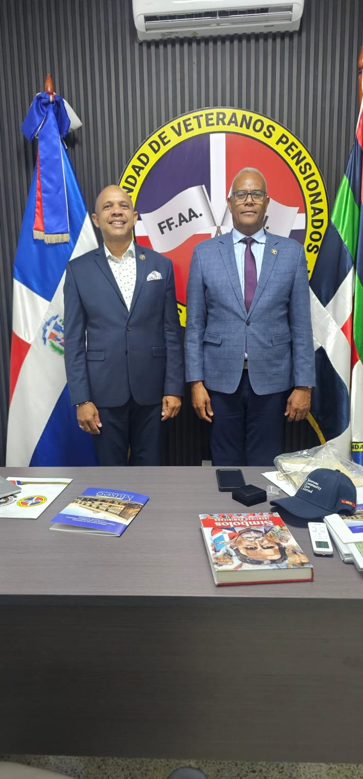 El Mayor General (R) Valerio García Reyes, ERD. Presidente de la Hermandad de Veteranos FF.AA. y P.N. recibió en su despacho al artista plástico y empresario Wilson Santana.