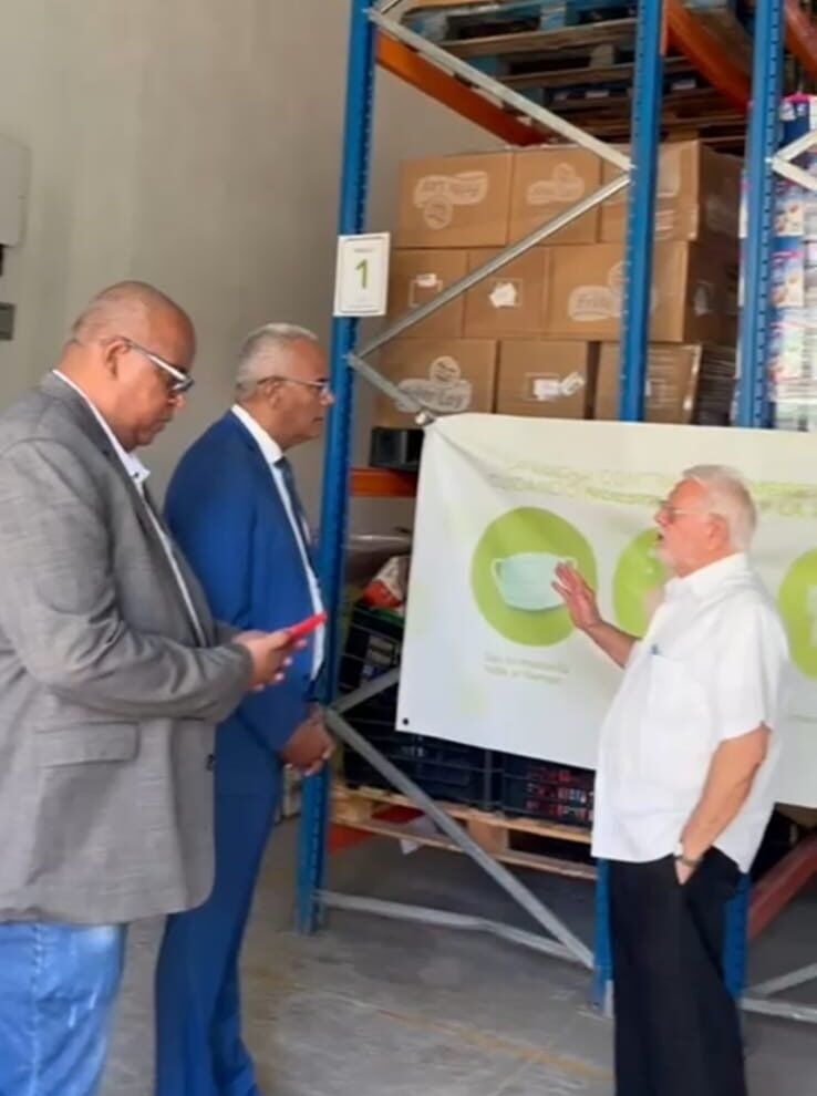 El Mayor General (r) Valerio Antonio García Reyes, ERD, Presidente de la Hermandad de Veteranos de las Fuerzas Armadas y la Policía Nacional, Inc., realizó una visita institucional a las instalaciones del Banco de Alimentos de la República Dominicana, donde sostuvo un encuentro de trabajo con el Director General, Reverendo Padre Domingo Legua, y con la Directora Ejecutiva, señora Julina Staffeld.