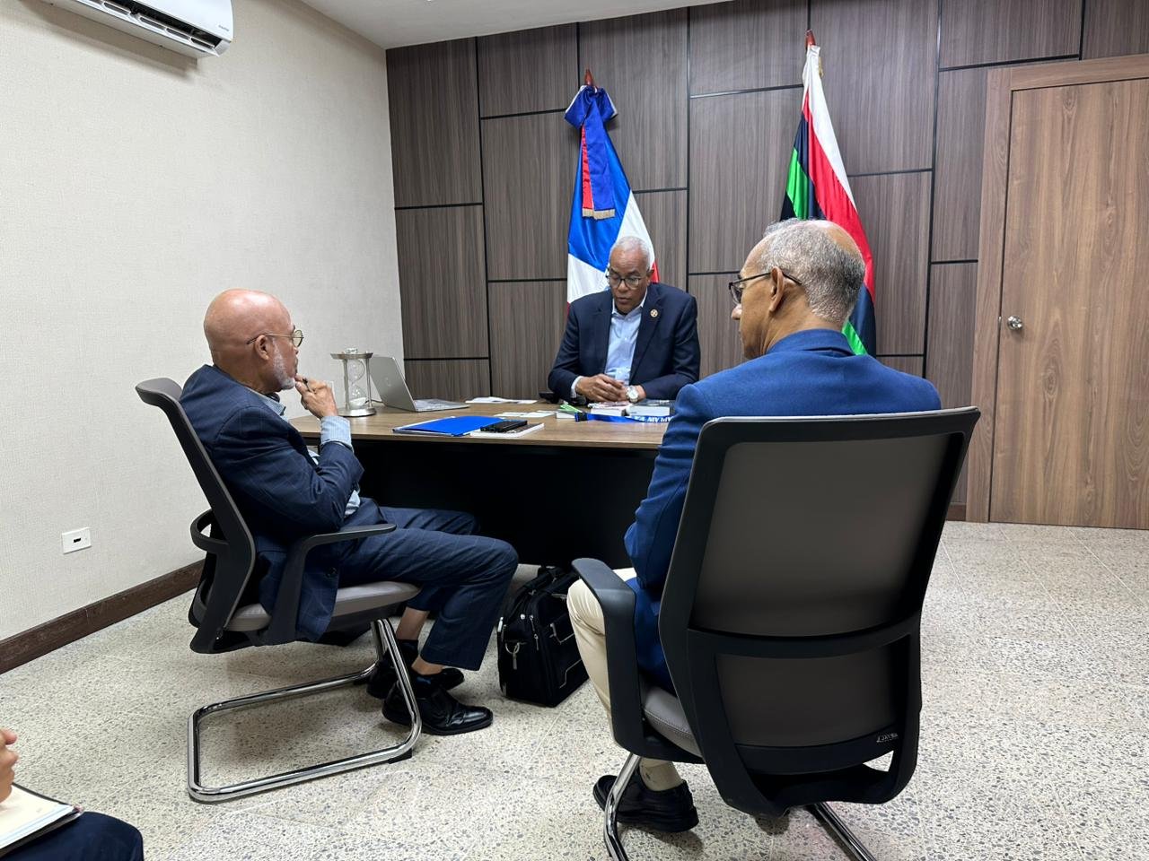 El Dr. Luis Díaz fue recibido por una comisión institucional encabezada por el Mayor General (R) Valerio Antonio García Reyes, ERD, presidente de la Hermandad, a quien informó sobre los contactos sostenidos recientemente con la Directora y la Encargada de Operaciones del Banco de Alimentos del Estado de Rhode Island, así como con el Banco de Alimentos Elías, quienes brindarán asesoría técnica especializada para la puesta en marcha del Banco de Alimentos de la Hermandad.